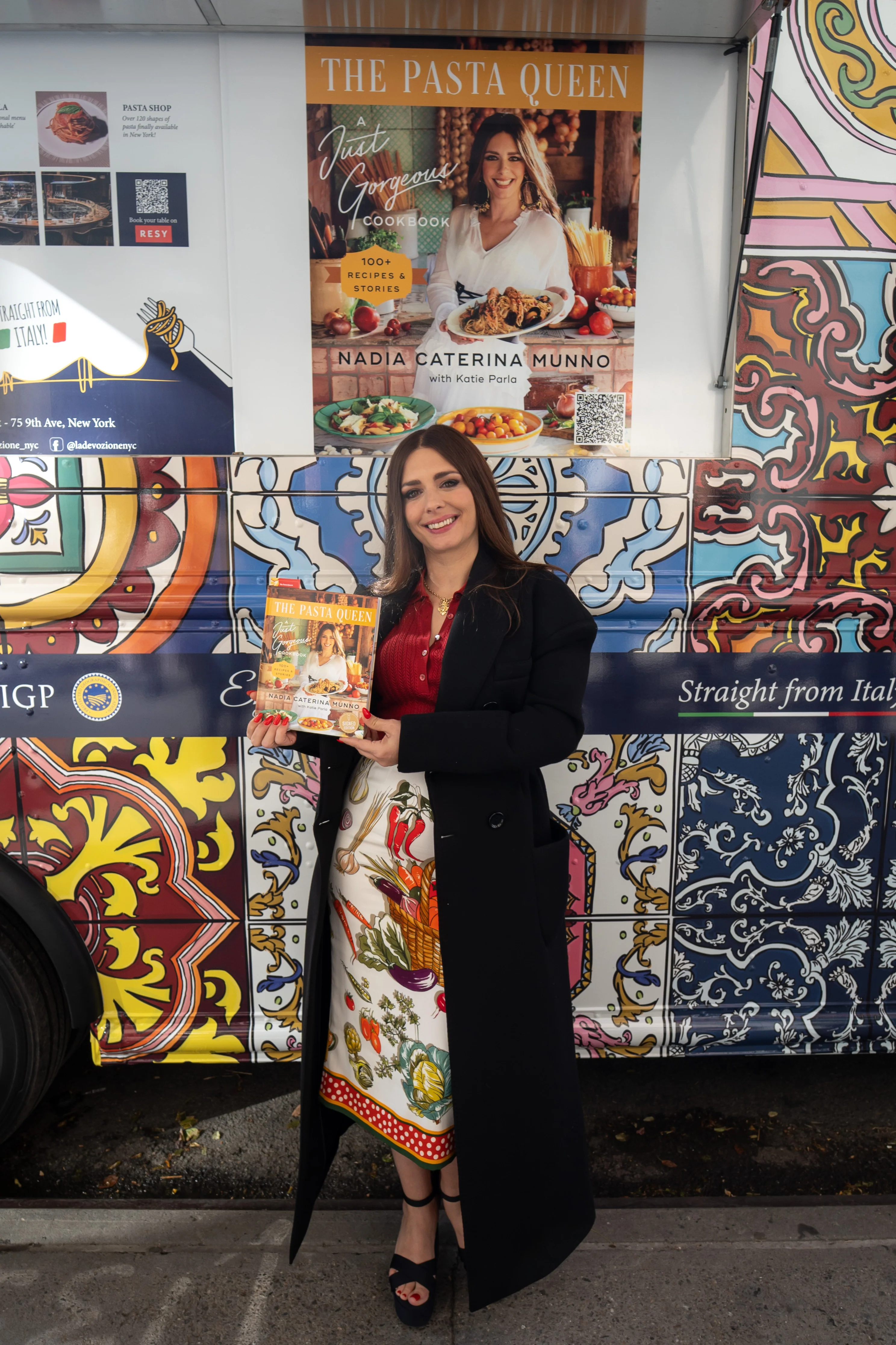 Five bags of PGI Gragnano pasta made with 100% Italian durum wheat inside the classic blue tin box with vintage style pin-up. The tin includes the “Just Gorgeous Cookbook” by Nadia Caterina Munno- aka The Pasta Queen- with all the renowned recipes that made her famous.